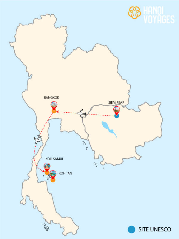 Circuit Cambodge Thaïlande 10 jours à la découverte du site mythique d’ANGKOR Siem Reap puis Bangkok, une capitale emblématique d’Asie à l’île paradis Koh Samui